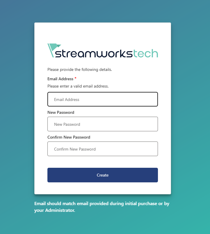 - Fill in the email you used to sign up and create a password for the account.