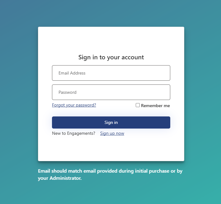 This guide will go through how to login to your account for the first time after purchasing the Engagements Subscription.
