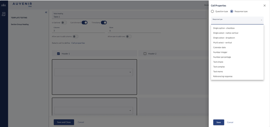 - User can be able to choose the appropriate "response type." From the multiple options. Response type dropdown contains the option like Single option – Checkbox, Single select - radios vertical, Single select – dropdown, Multi - select vertical, calendar date, Number integer, Number percentage, Text simple, Text complex, Text memo and Referencing response.