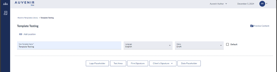 - To the right of the "New Template" header, there will be a "Preview content" button to preview the template within the application.