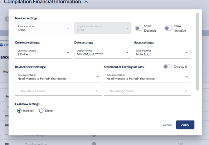 - From the pop up, you can adjust any Statement settings that suit your preferences for the statement.