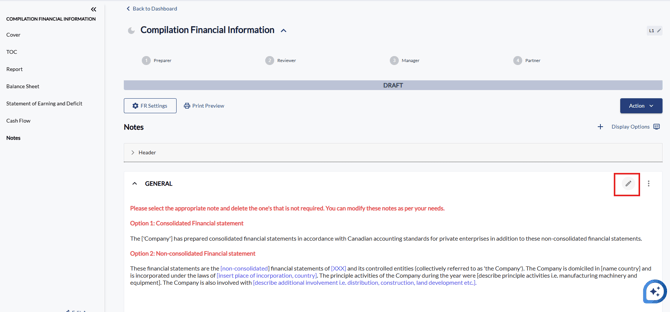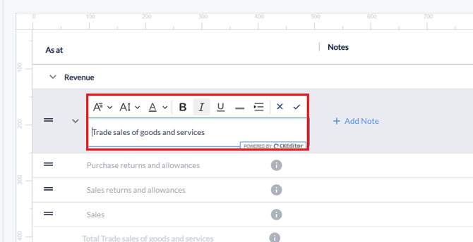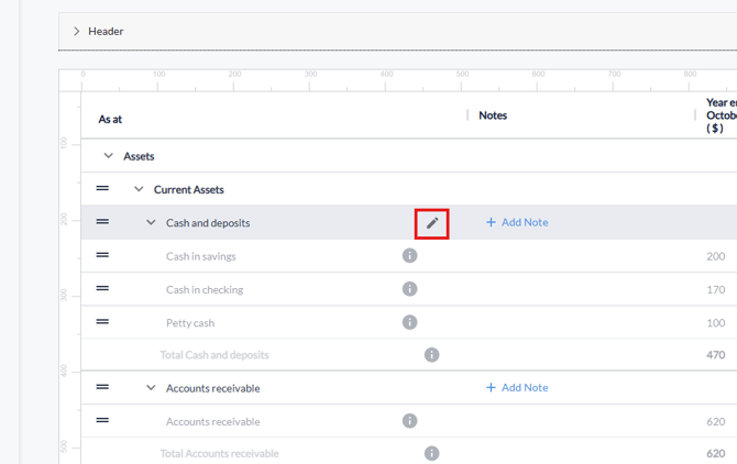 - You can edit any area with a 'Pencil Icon' next to it, for instance, you can edit the name of any accounts in the Financial Statement: