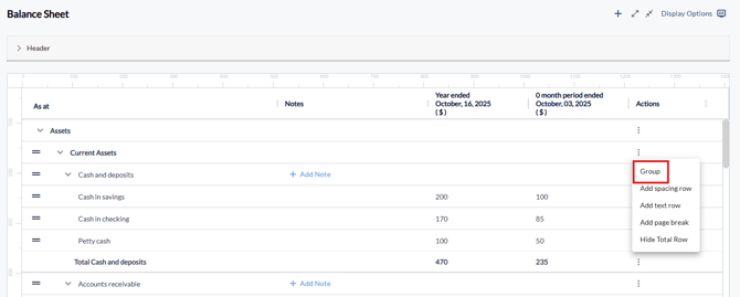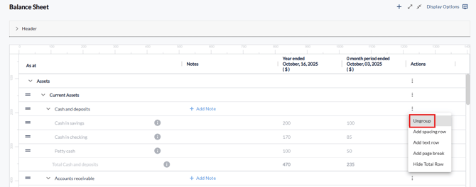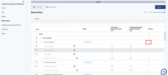 - On the Balance Sheet, you can open the Accounts breakdown to reflect in the final download.
