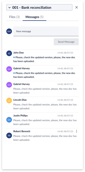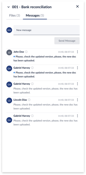 - Within this newly opened drawer, the messages tab must be highlighted, indicating that the user has entered the messages tab. The panel will only show messages specific to the row on which user clicked to access this panel.