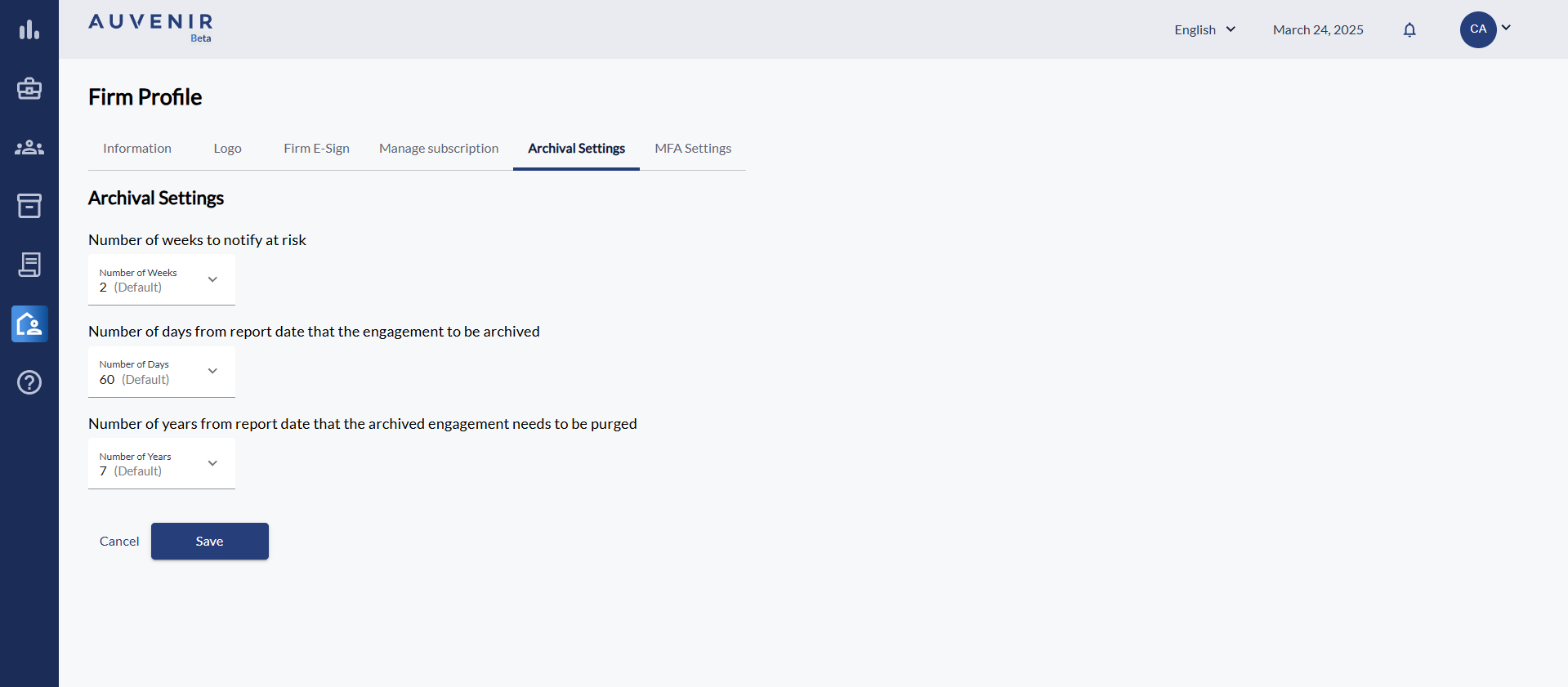 2. Select the Archival Settings
