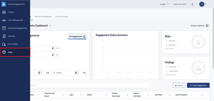 - Use the left navigation to find the Help tab