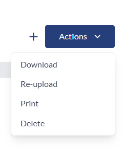 - In addition, there will be an “Actions” dropdown present in the applicable section. When the user clicks that dropdown, there will be four options: "Download", "Reupload", "Print" or "Delete".