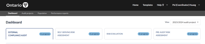 This view is accessible by the MTO team only. This view provides a holistic picture of the overall audit project status, for current and past audit cycles. |