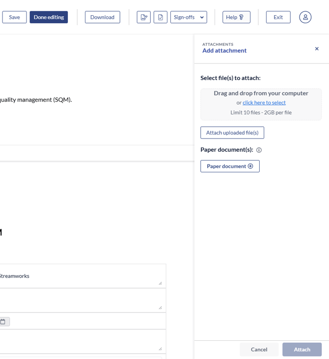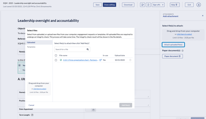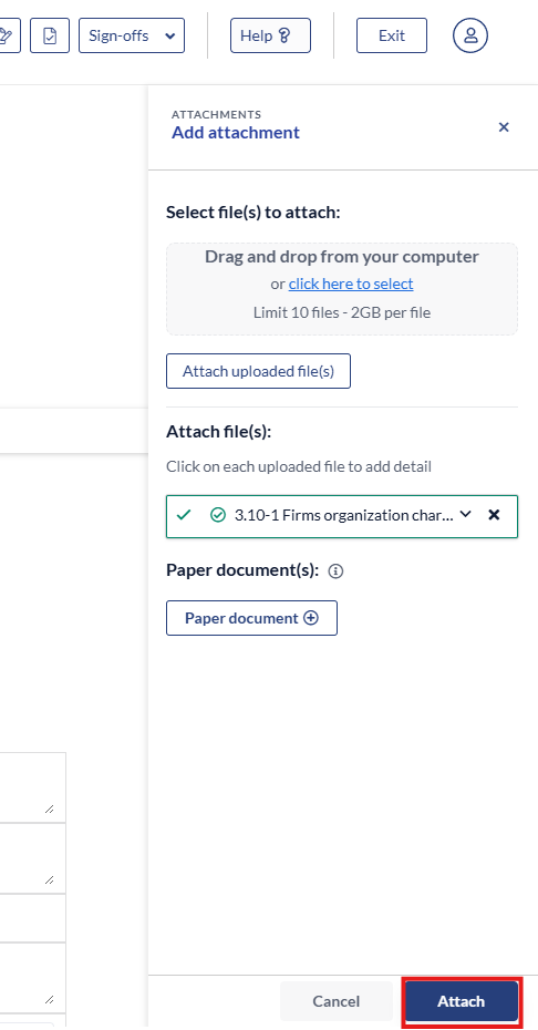 - Click the 'Attach uploading file(s)' button or drag and drop a file to the grey area. If you click the 'Attach uploaded file(s)' button, you will see the pop up menu to select your file.