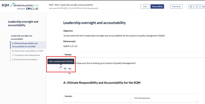 The Common Tool feature can be found on all sources of information that needs to be filled in, whether it is a textbox or a dropdown menu.