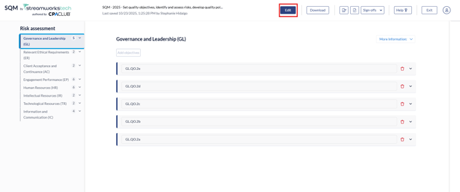 The form is titled 'Set quality objectives, identify and assess risks, develop quality policies and procedures' that you need to complete.