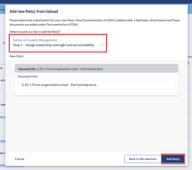 - Select the folder you want to allocate the document to and click 'Add File(s)'.