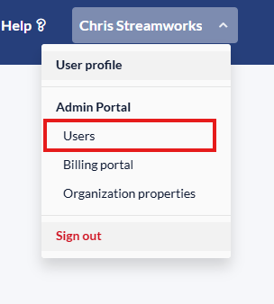 - Select 'Users' from the dropdown menu to access the Admin Portal.