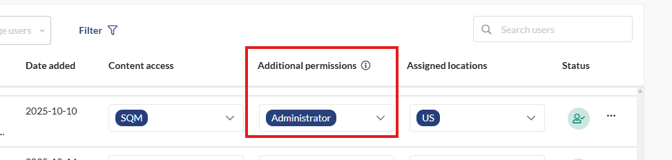 - To update the user with an 'Administrator' permission or 'Template Creator' permission, you can update 'Additional Permissions' dropdown.