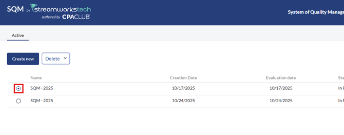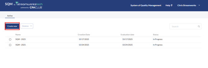 Otherwise, if one exists, you can click 'Create New' to begin a new SQM.