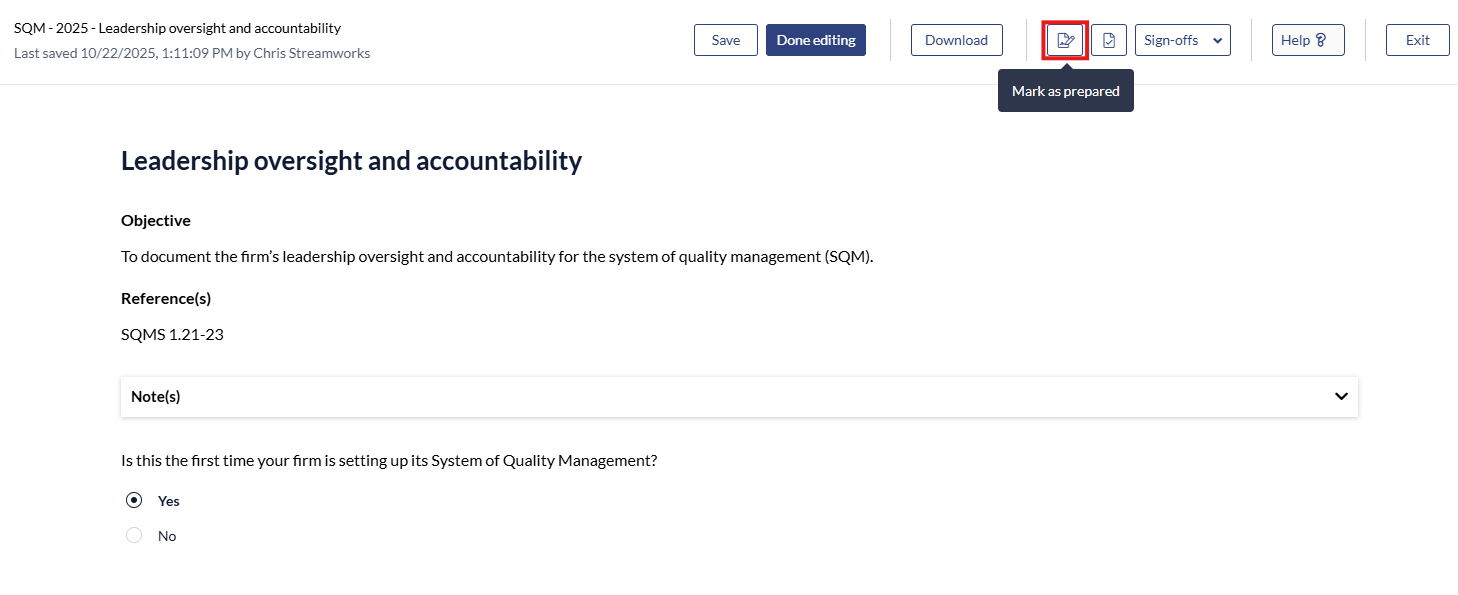 | Prepared | The document has been prepared and ready to be reviewed. | |