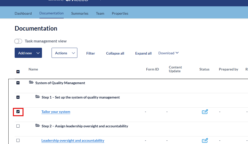 - When a document has had all the relevant information put in and it is ready for someone to 'Review a document, they can be marked as 'Prepared'.