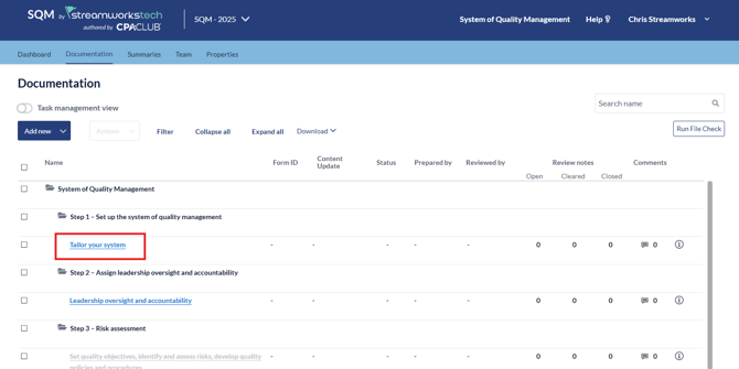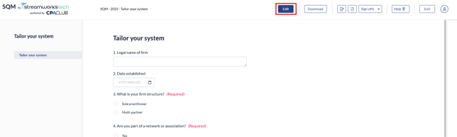 You will not be able to edit forms in Risk Assessment and Evaluating the SQM until the Tailor you System questionnaire is complete.