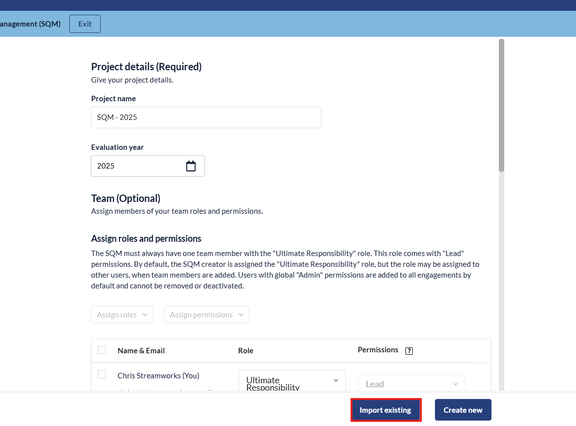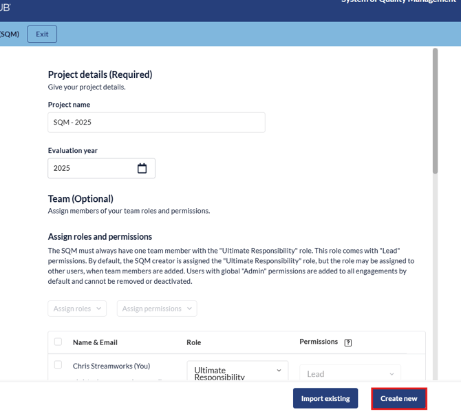1. Fill in the relevant information for your SQM and click 'Create New'.