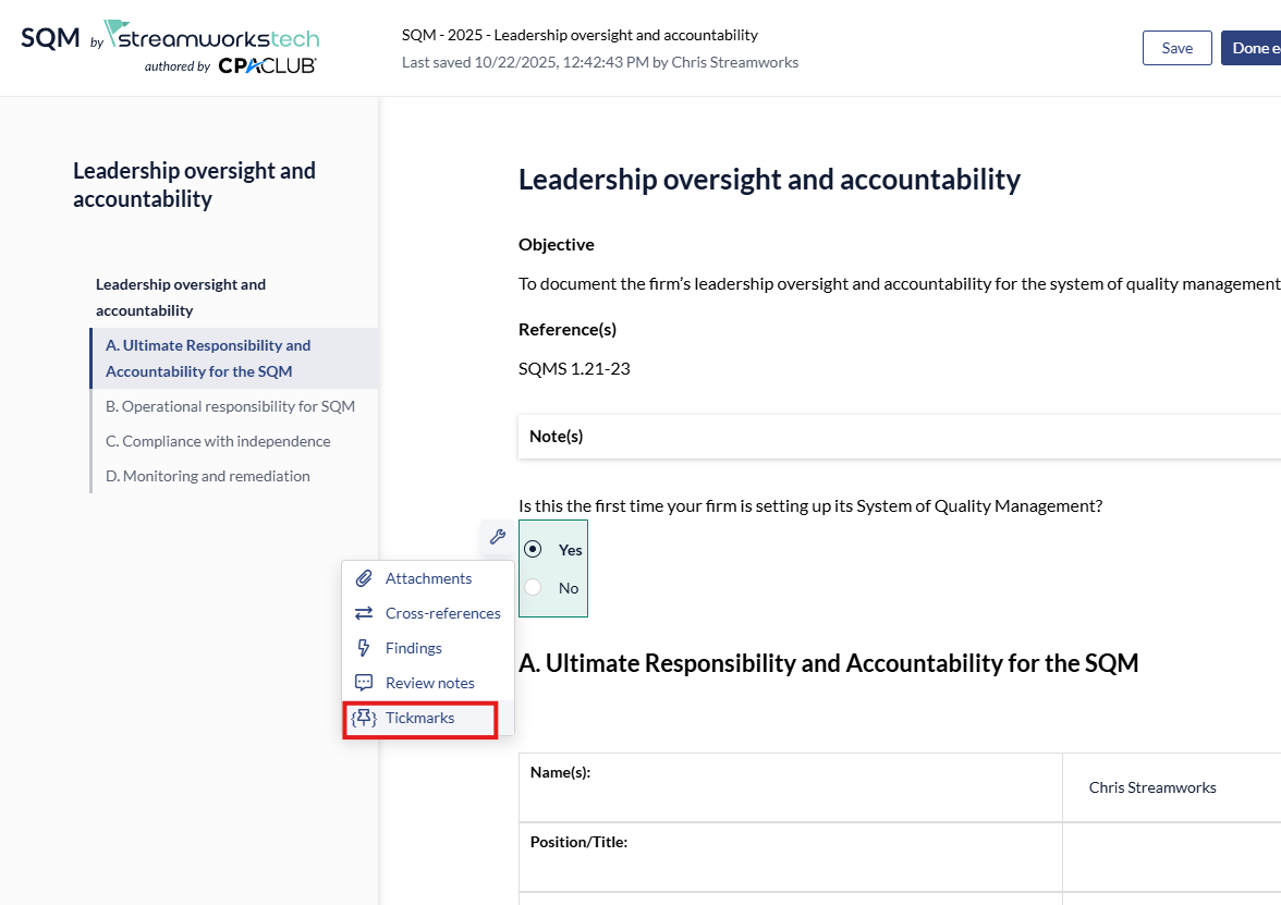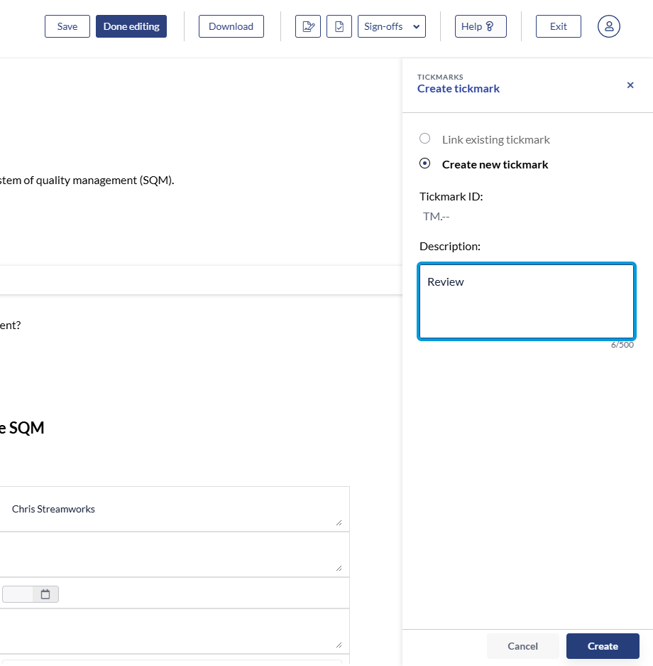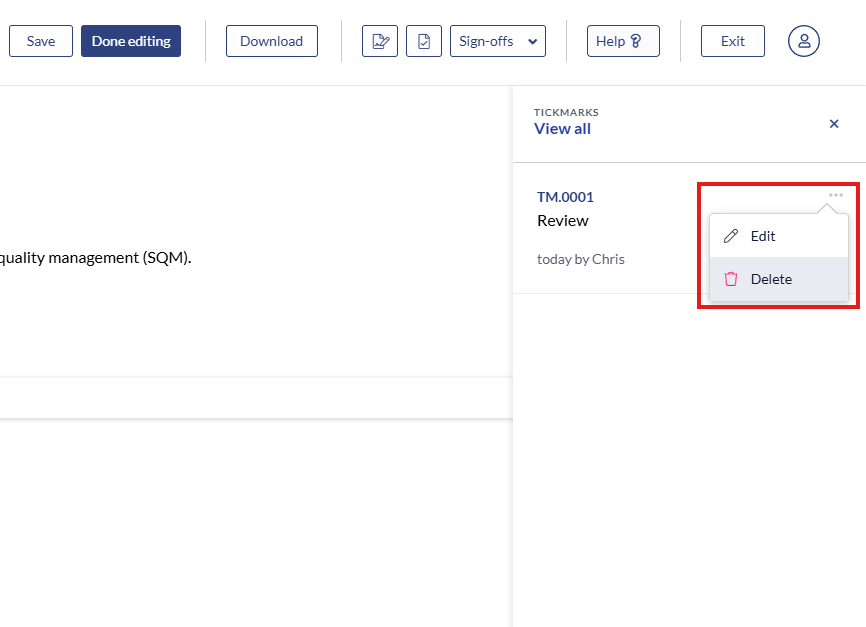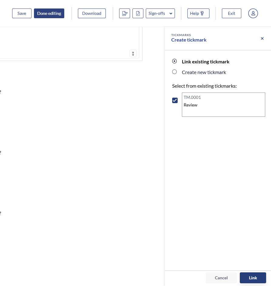4. You can then 'Link' other parts of your SQM to a particular Tickmark as well by selecting 'Link existing Tickmark.
